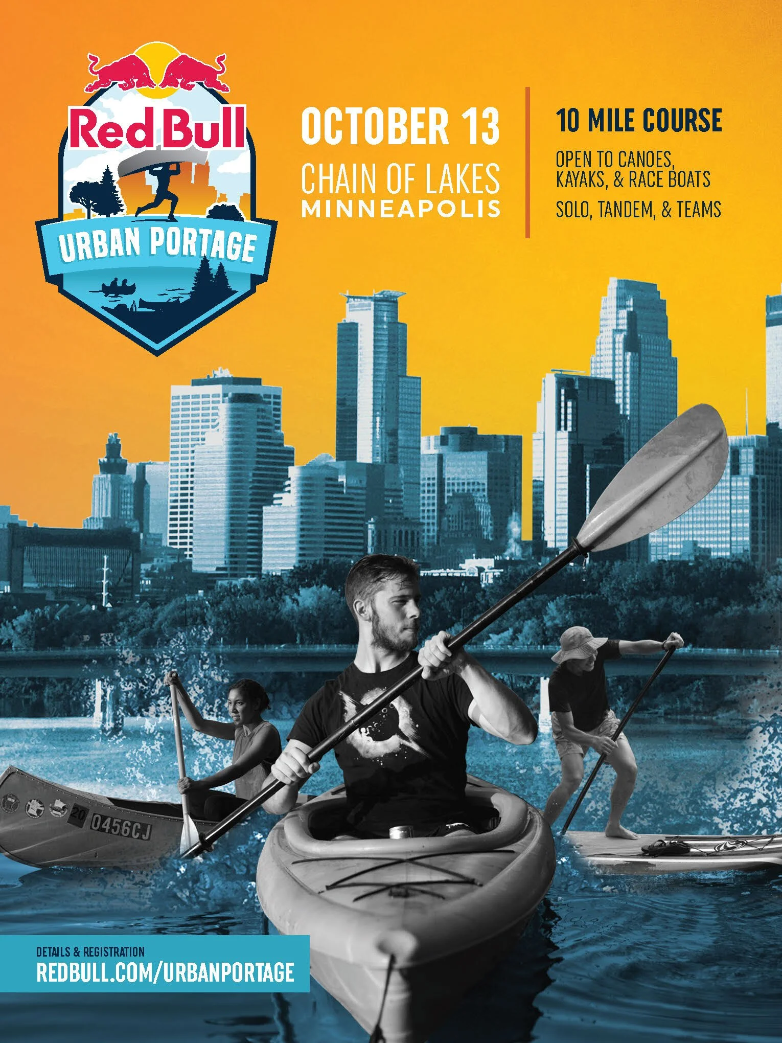 For Red Bull’s first Urban Portage event - a canoe, kayak, and paddle board race held across the lakes in the Minneapolis, Red Bull needed event branding to portray the landscape of the race. The event brand identity included the logo, key visual, shirts, signage, trophies, social & web assets, and teaser video graphics. Competitors came from around the Twin Cities and the state for the unique opportunity to race in a new setting.